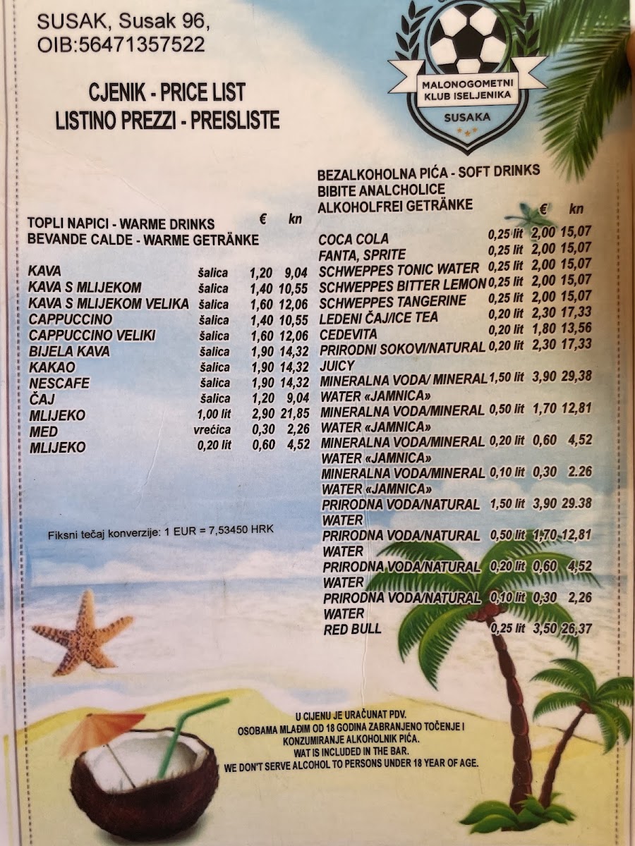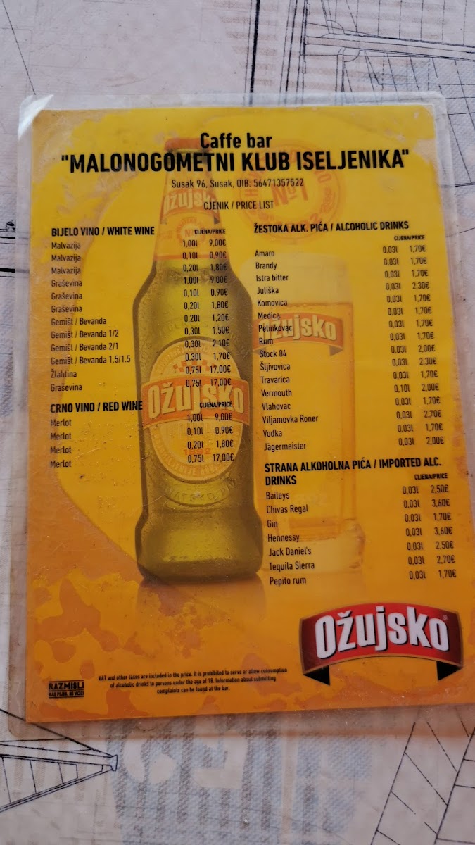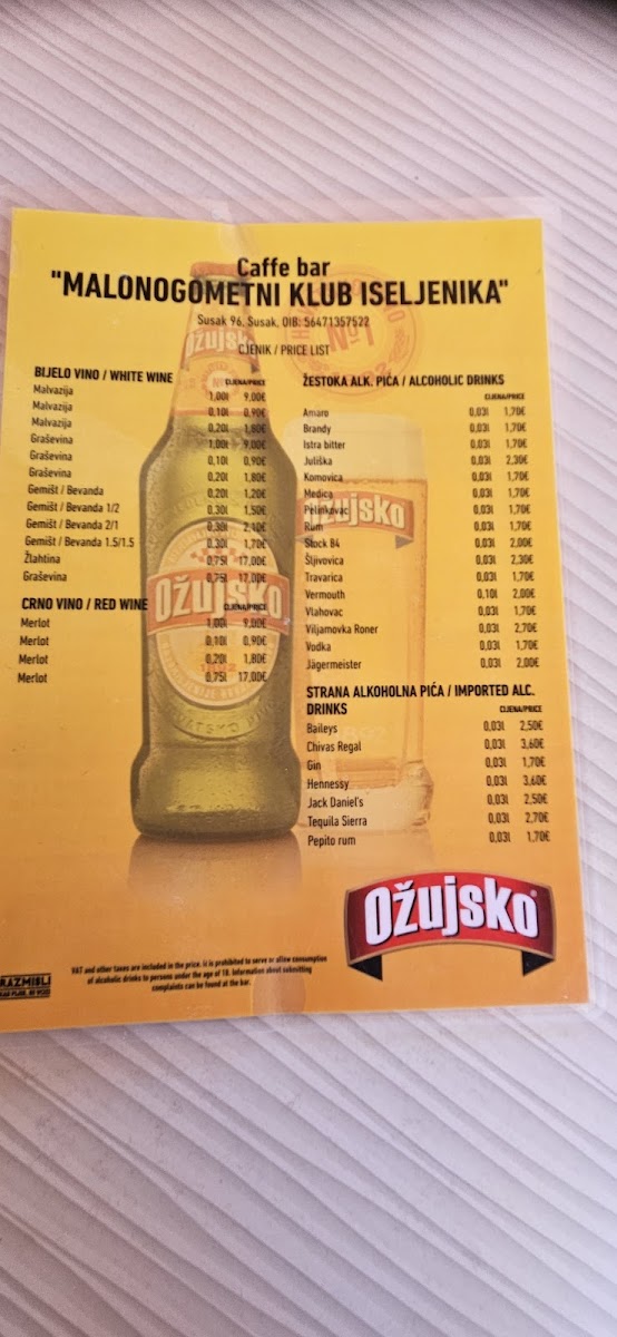 Caffe bar 'Malonogometni Klub Iseljenika' Menu
